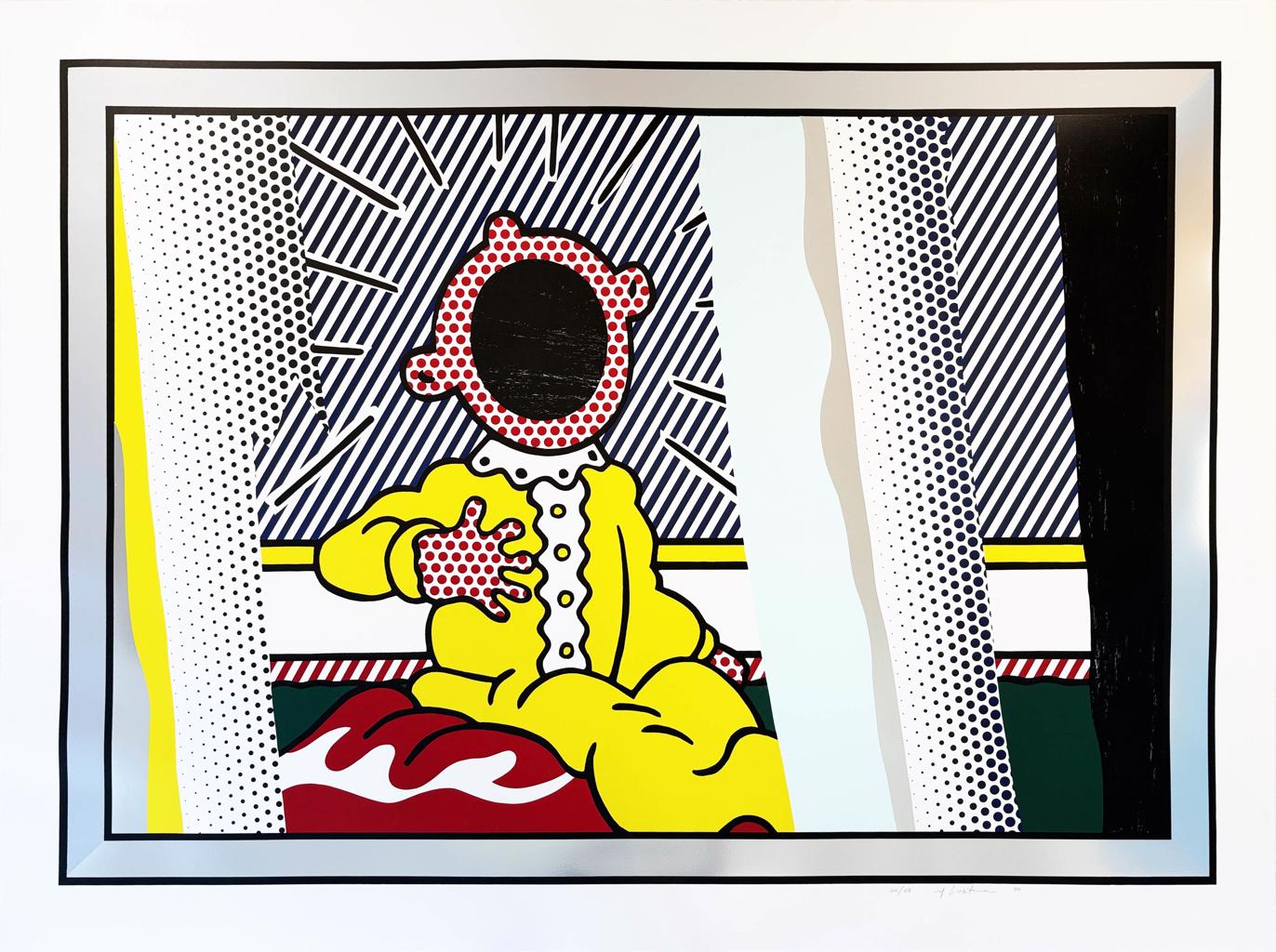 Reflections on The Scream from Reflections series 1990; Monumental lithograph, screenprint and woodcut with metalized PVC collage with embossing in colors, on Somerset paper; 48 3/4 x 65 3/8 inches; Edition of 68